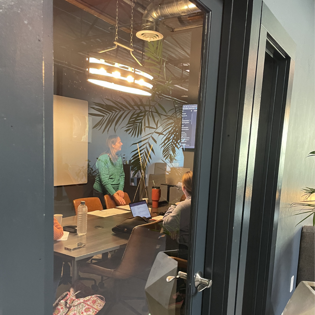 For smaller gatherings, our large conference room is perfect for 6–8 people. It’s equipped with a whiteboard for collaboration, screen-sharing for presentations, and a setup that makes learning interactive. We’ve hosted blog writing sessions, Pinterest workshops, and Canva 101 classes here. And our members who have small teams love the flexibility and FREE use of our conference rooms to strategize with their team.