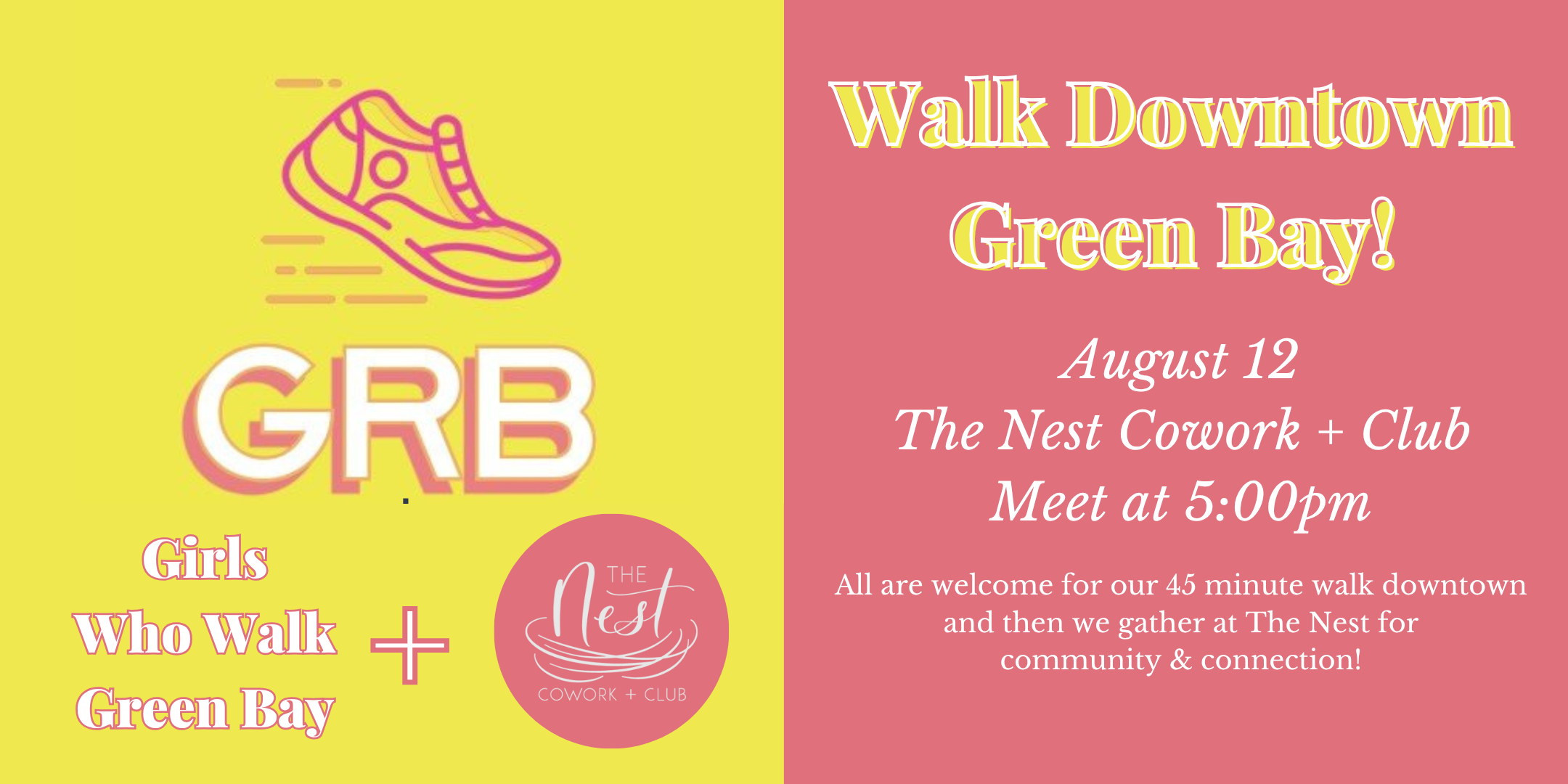 We’re teaming up with The Nest Cowork + Club for a special edition walk + social event in the heart of downtown Green Bay.